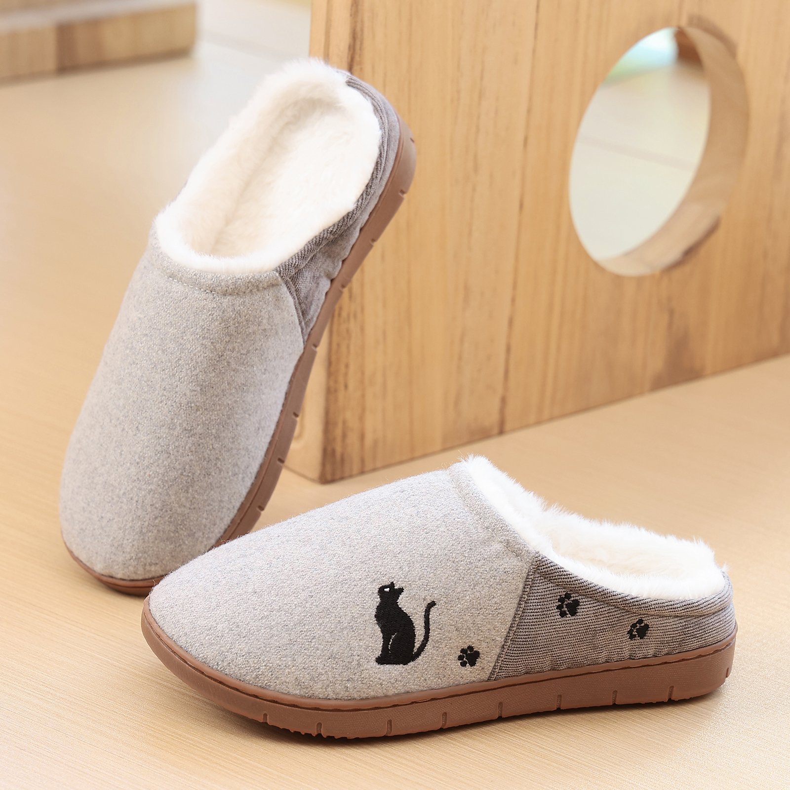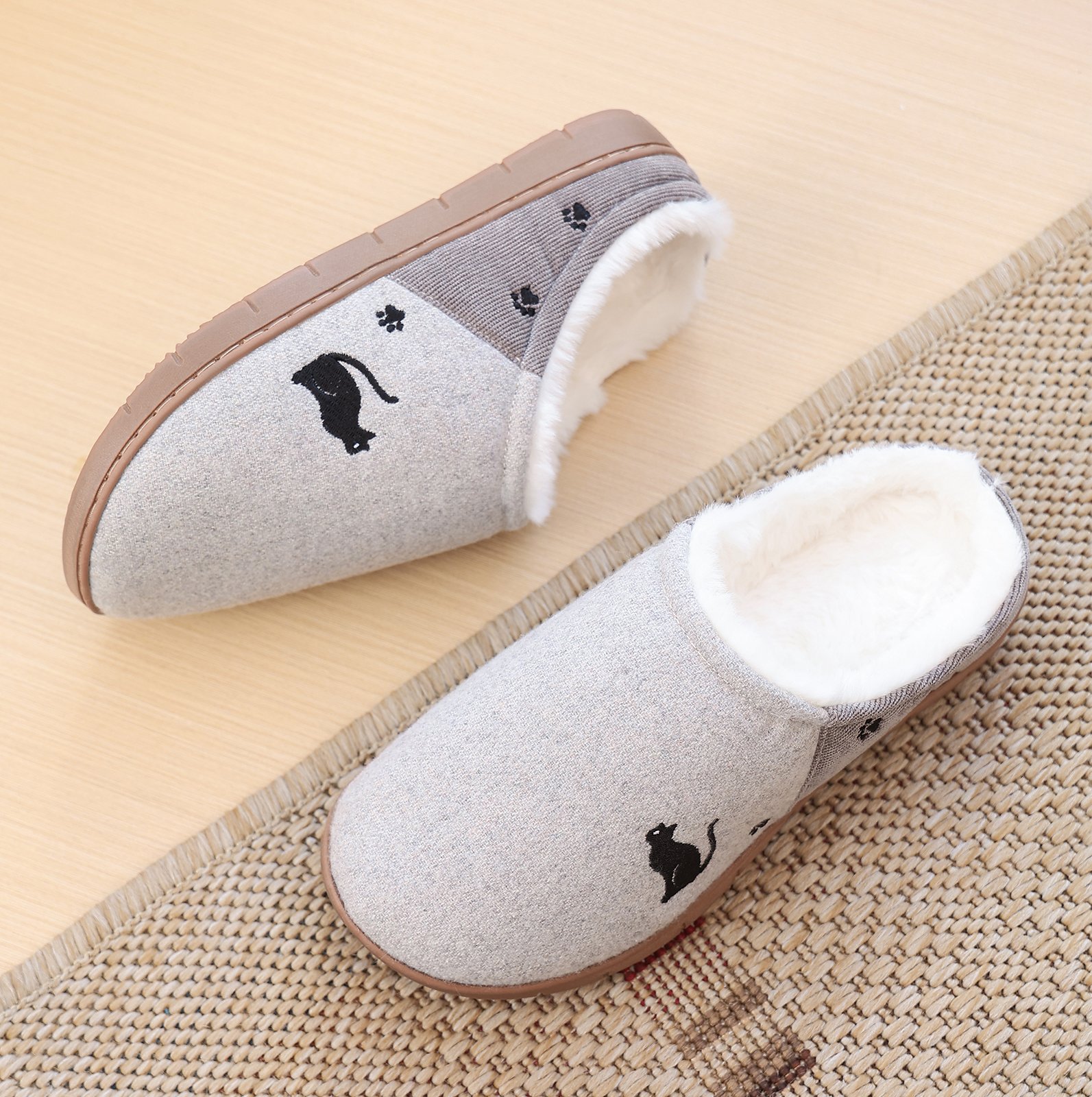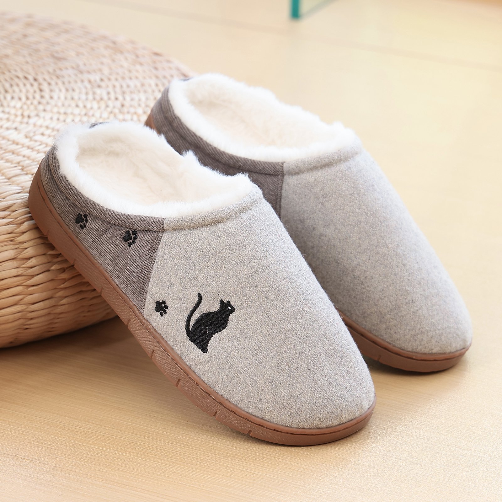Flukinのボアスリッパは、寒い冬に最適なあったかルームシューズです。内側には柔らかなボア素材を使用し、足元をしっかりと暖めます。外側のデザインには可愛らしい猫のモチーフが施されており、見た目にも楽しい一足です。滑りにくいソールを採用しているため、室内での移動も安心です。快適な履き心地とデザイン性を兼ね備えたこのスリッパで、冬の室内生活をより快適にお過ごしください。