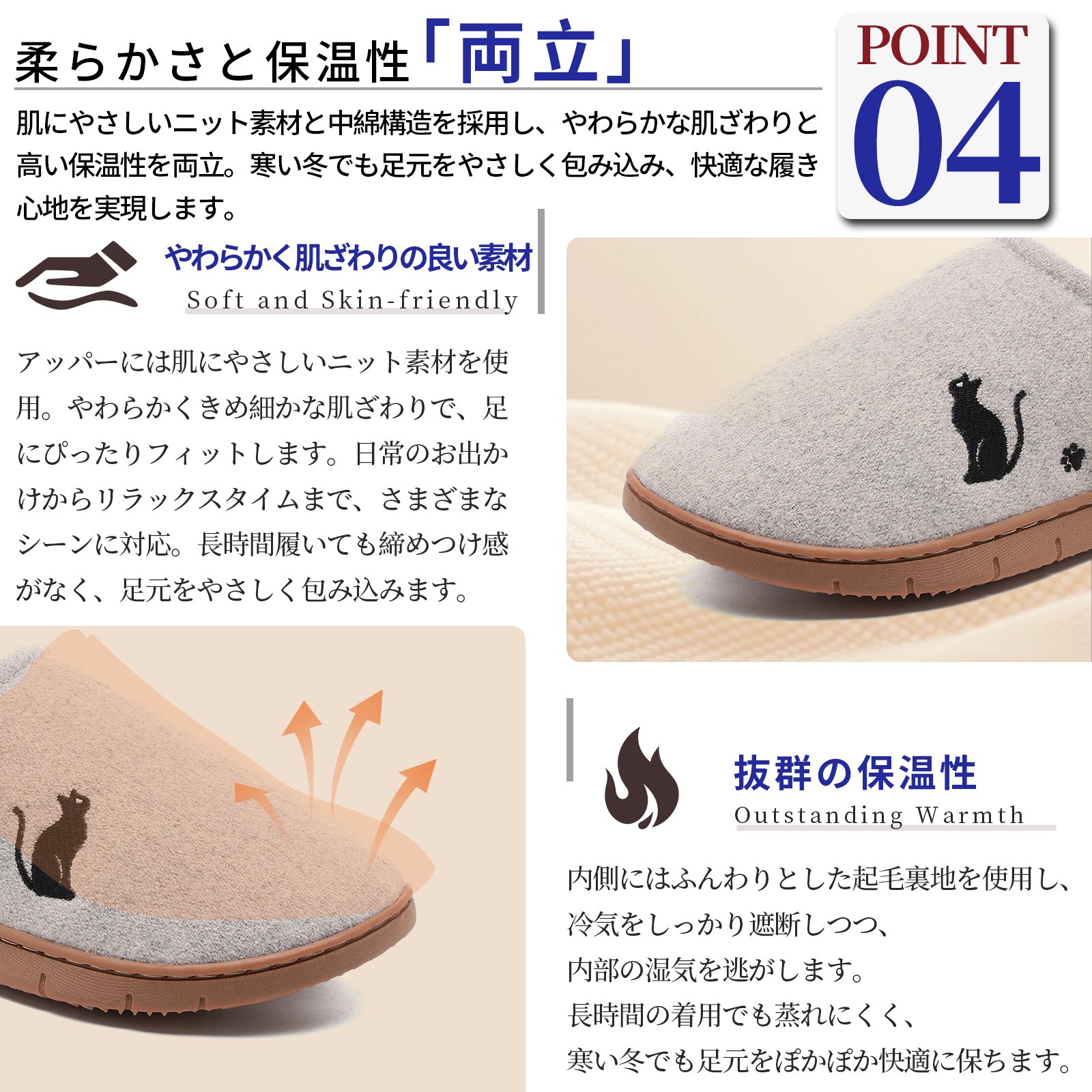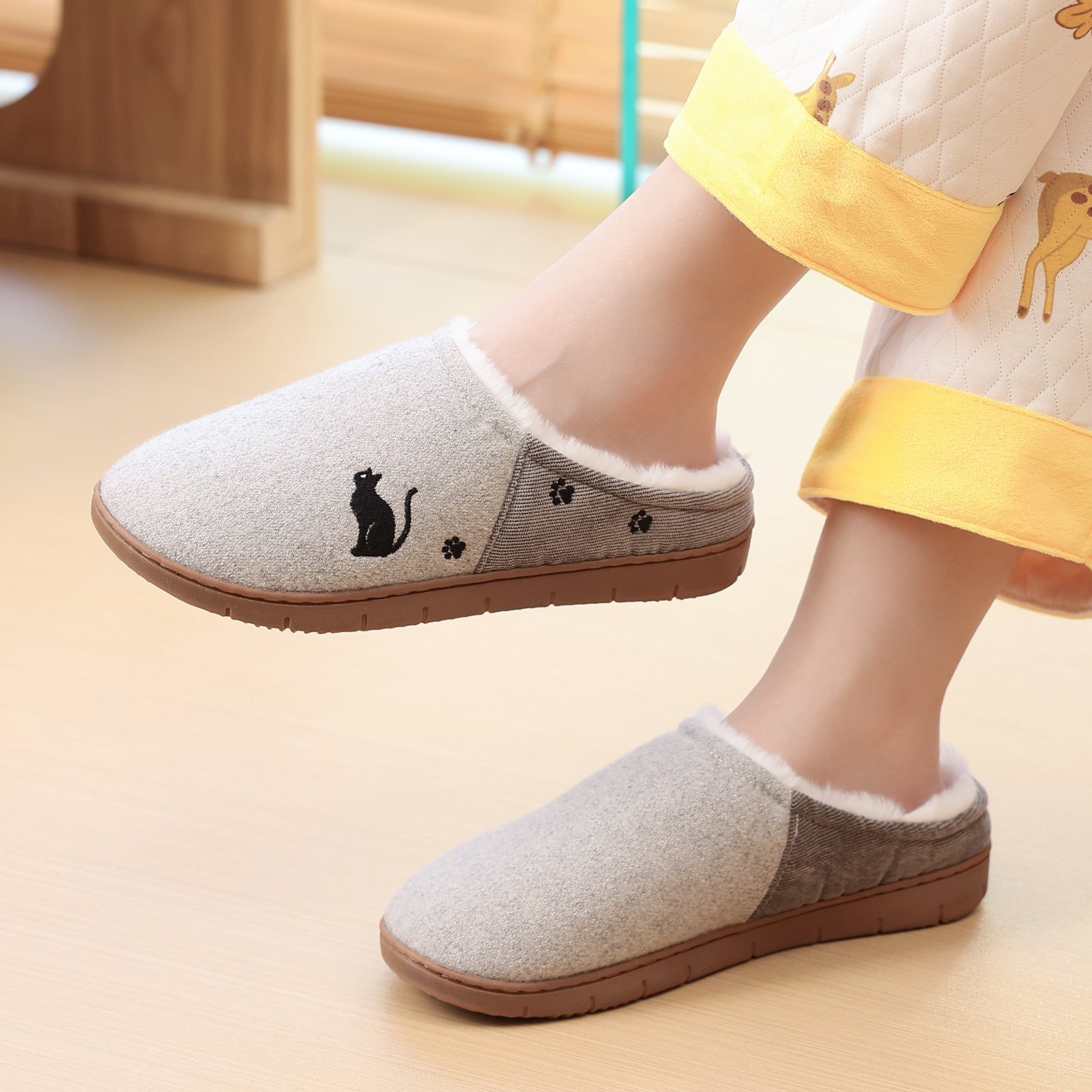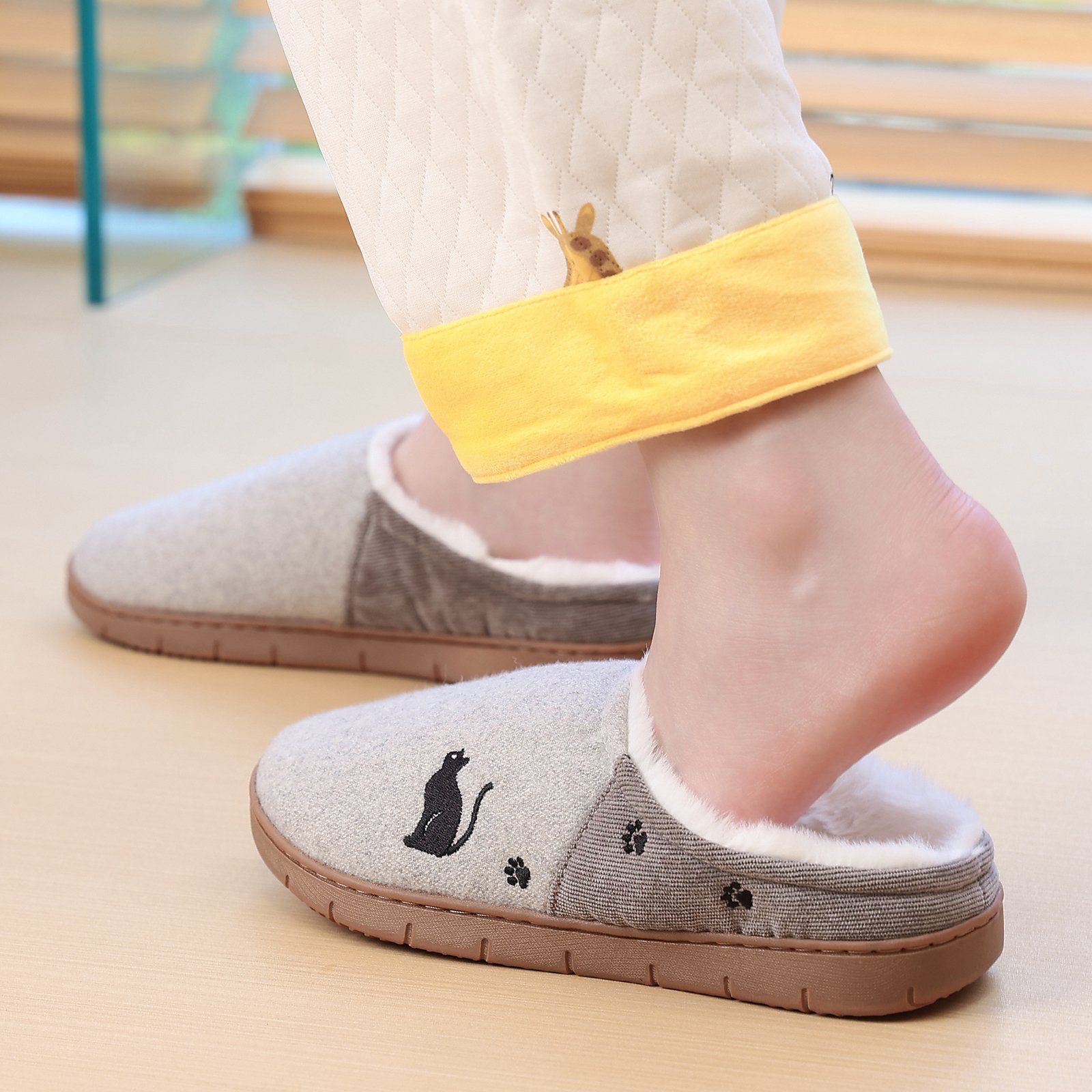 Flukinのボアスリッパは、寒い冬に最適なあったかルームシューズです。内側には柔らかなボア素材を使用し、足元をしっかりと暖めます。外側のデザインには可愛らしい猫のモチーフが施されており、見た目にも楽しい一足です。滑りにくいソールを採用しているため、室内での移動も安心です。快適な履き心地とデザイン性を兼ね備えたこのスリッパで、冬の室内生活をより快適にお過ごしください。