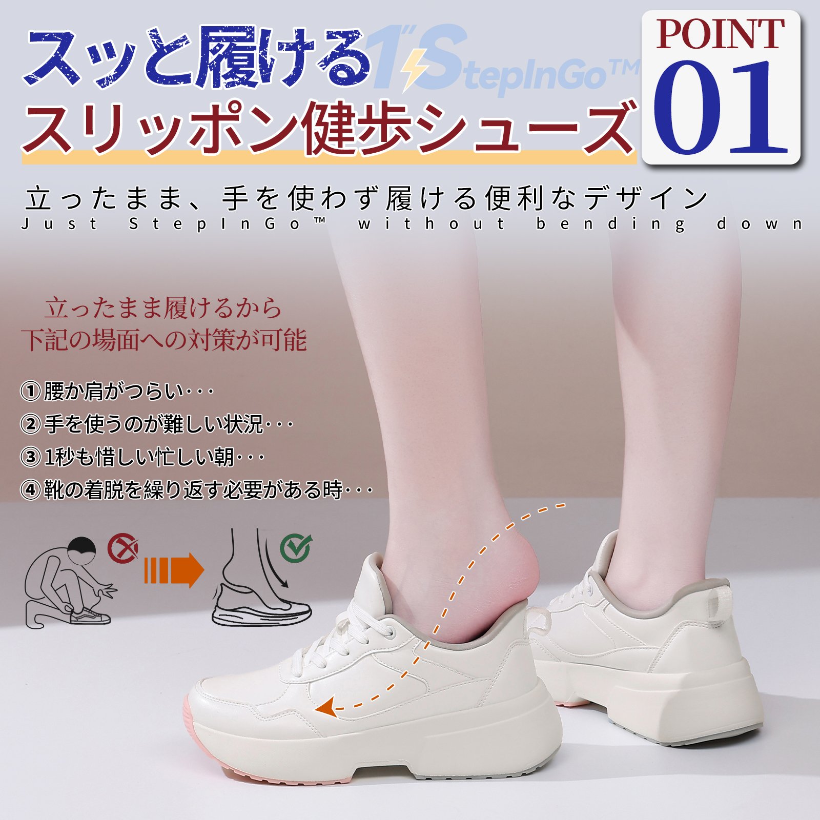 ◆ StepInGo立ったまま履ける便利なデザイン