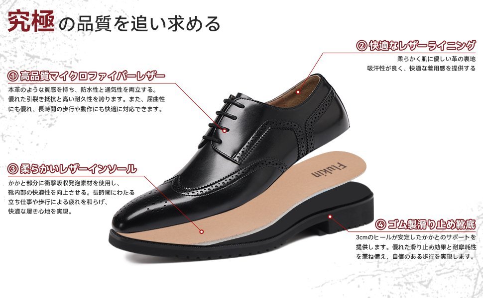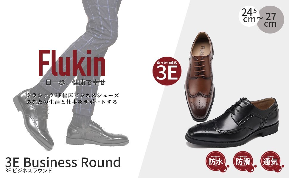 Flukin ビジネスシューズ メンズ 走れるビジネス 革靴 軽量 歩きやすい 紳士靴 通気 ウォーキング ドレスシューズ