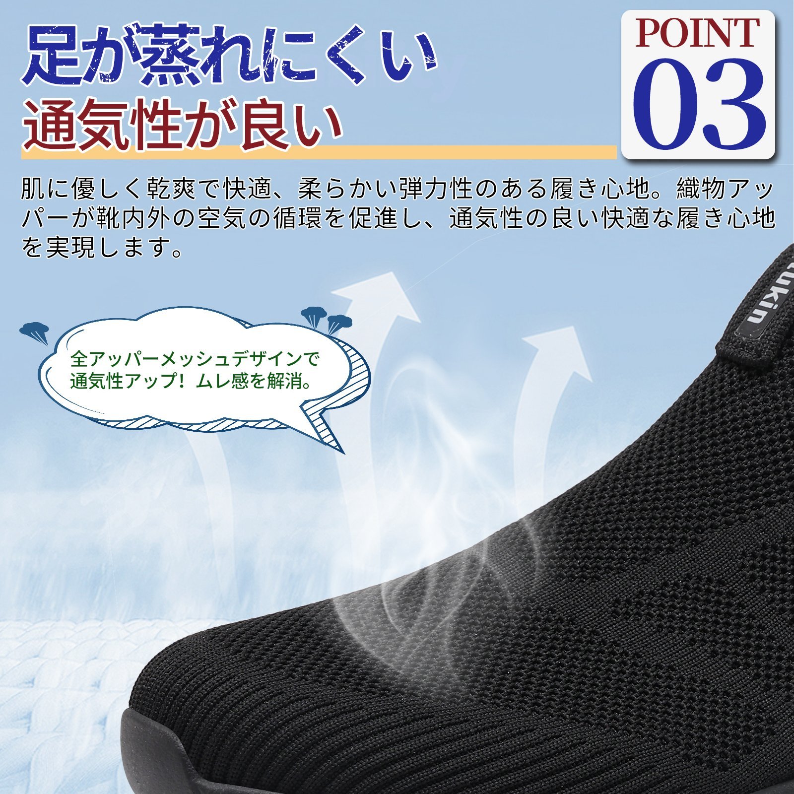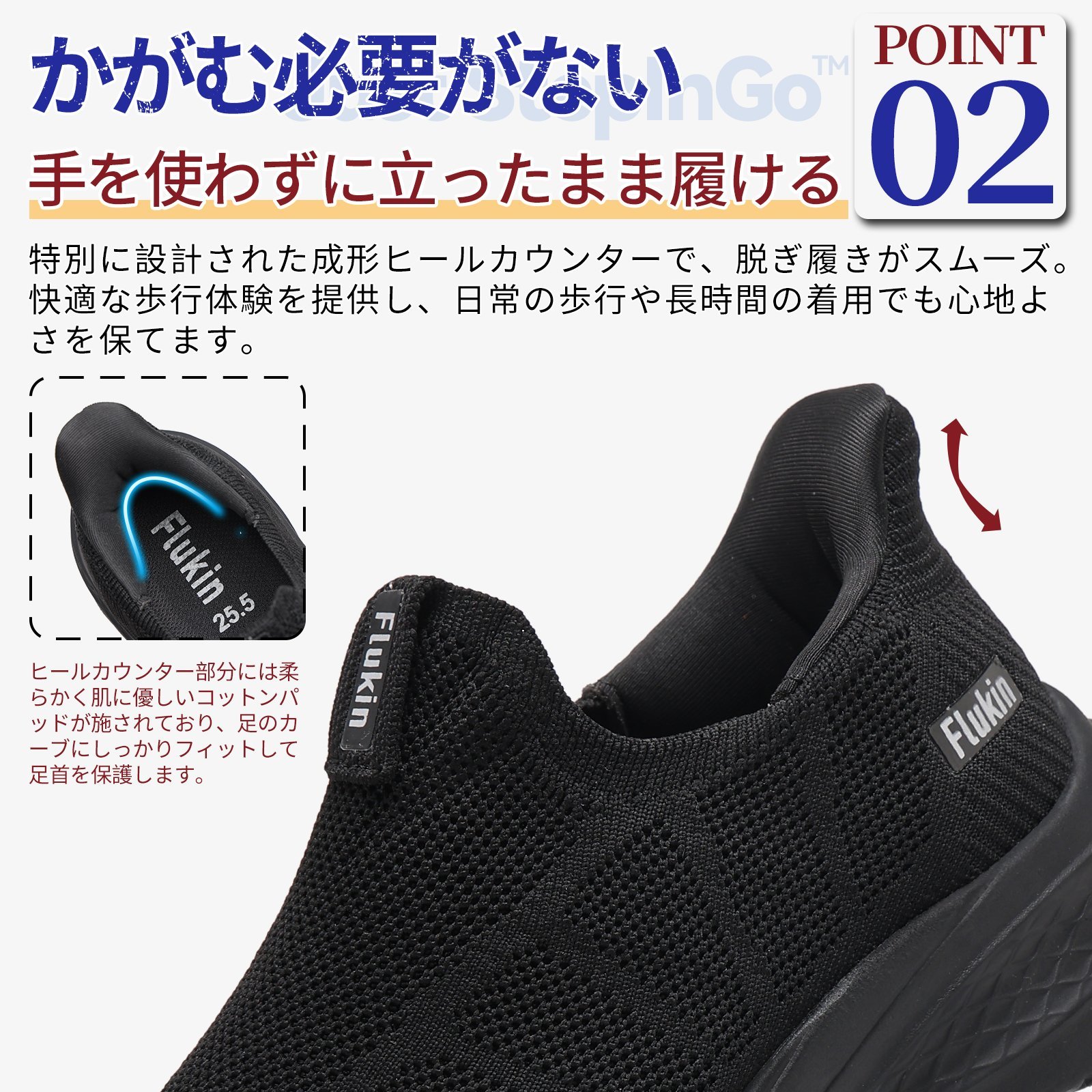Flukin 軽量スリッポン|高反発・通気性・快適フィット!立ったまま履ける健歩シューズ