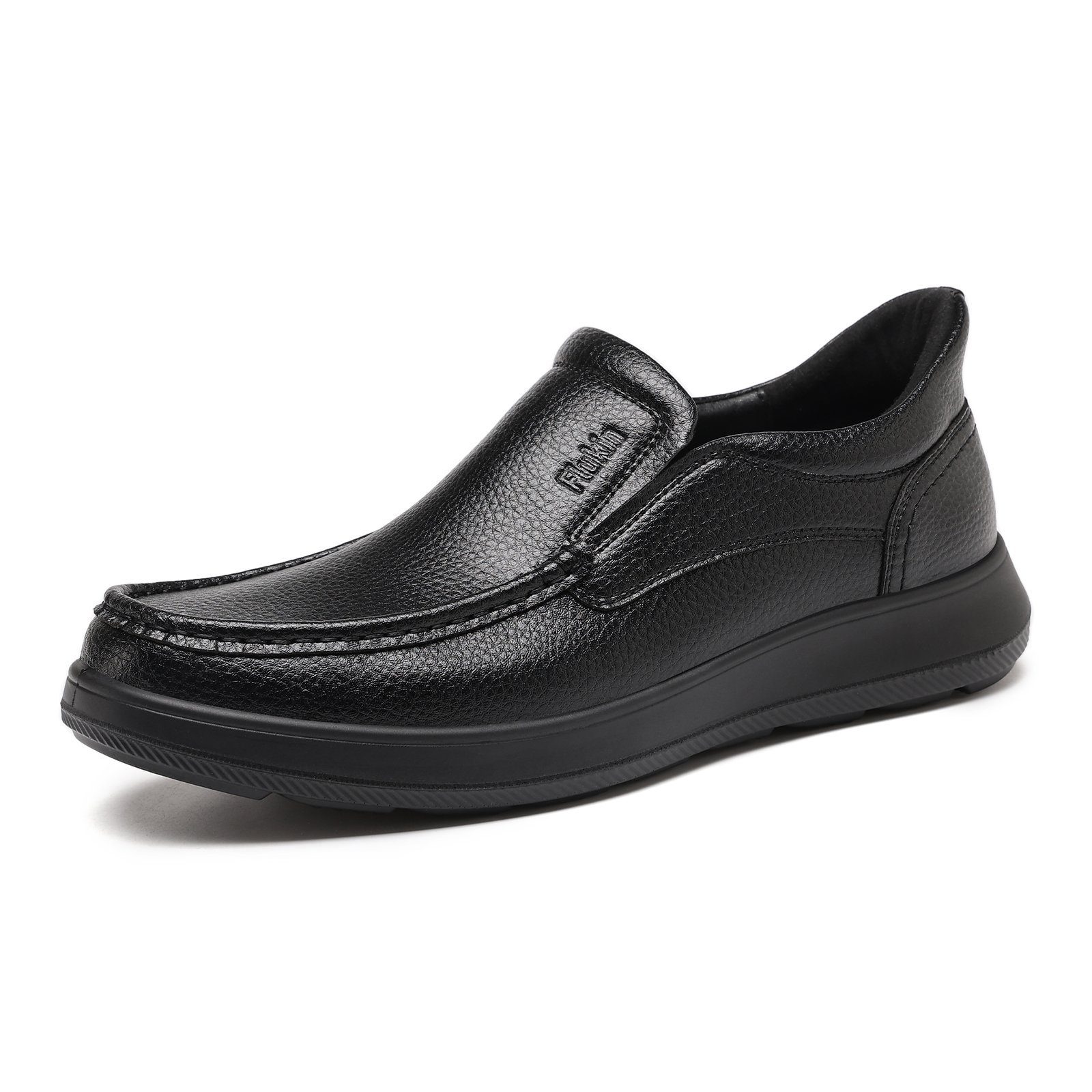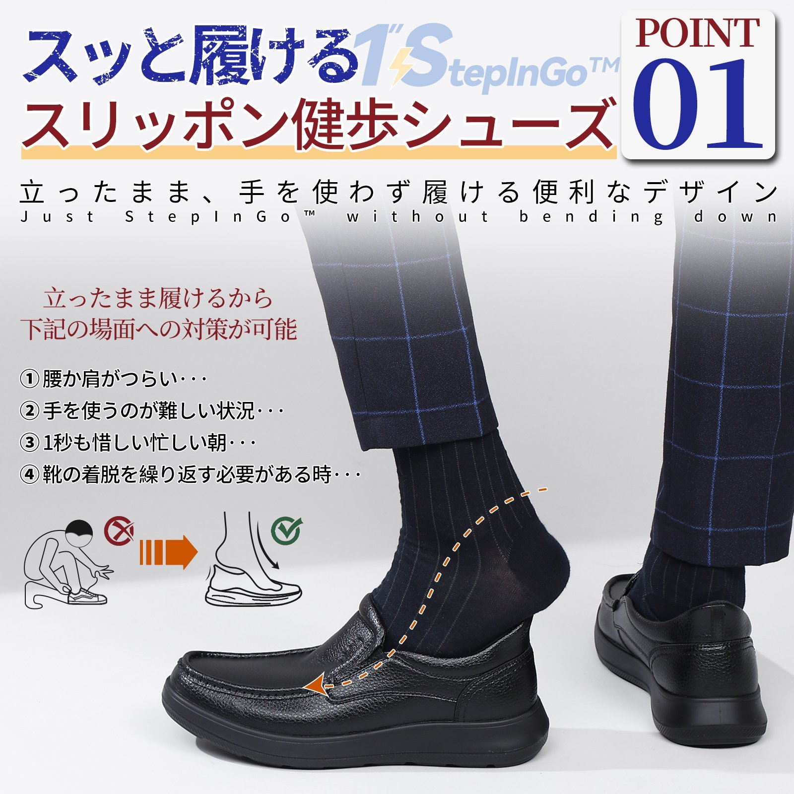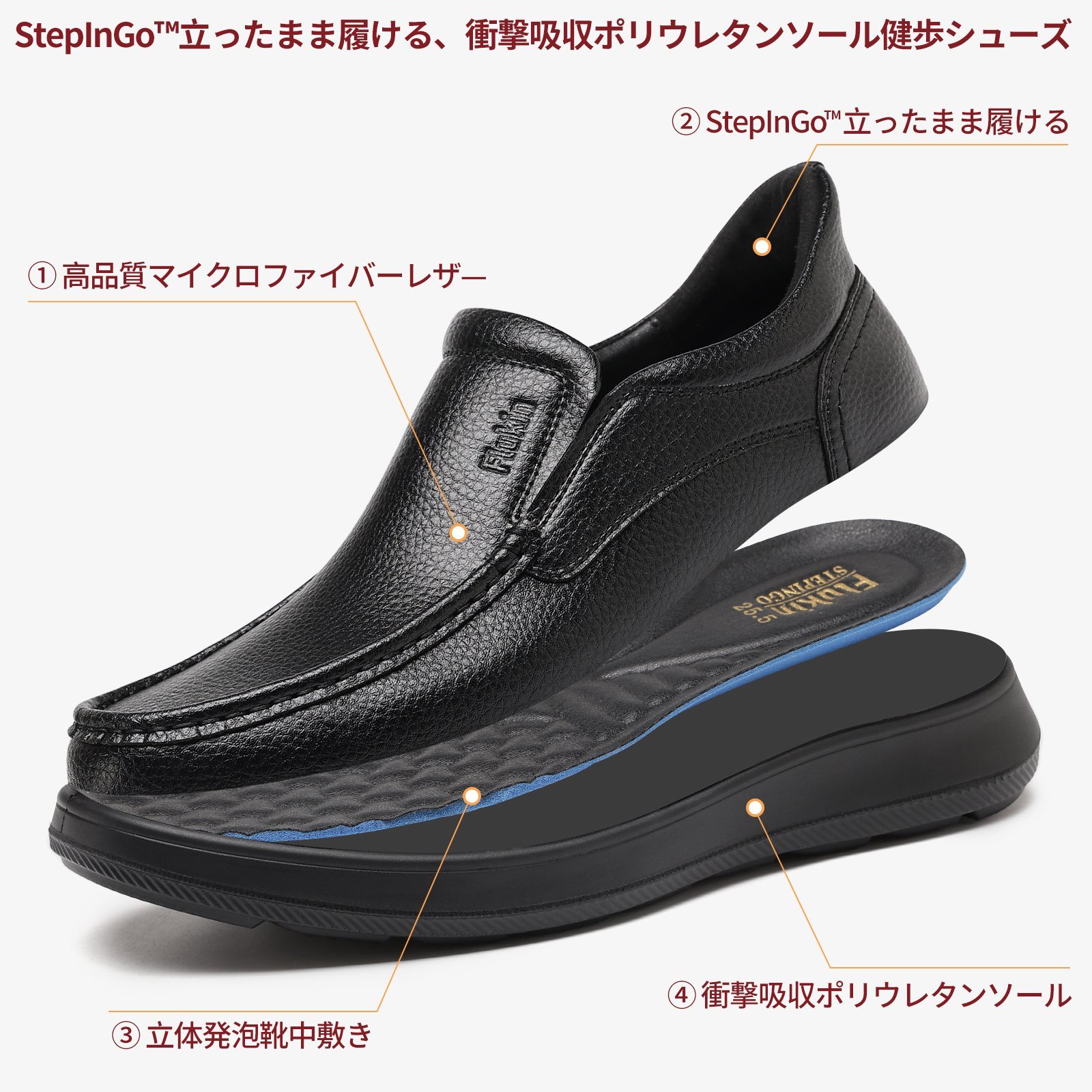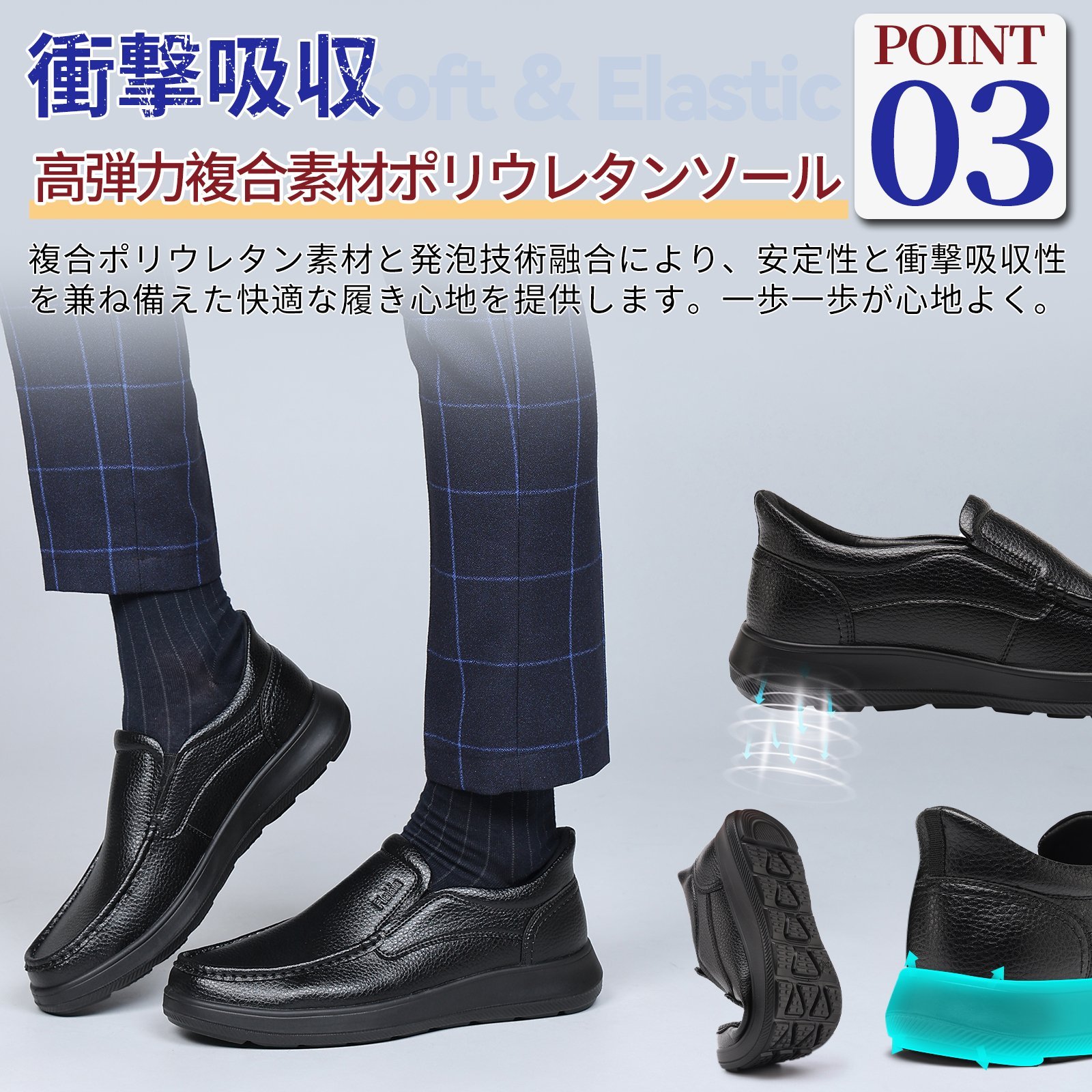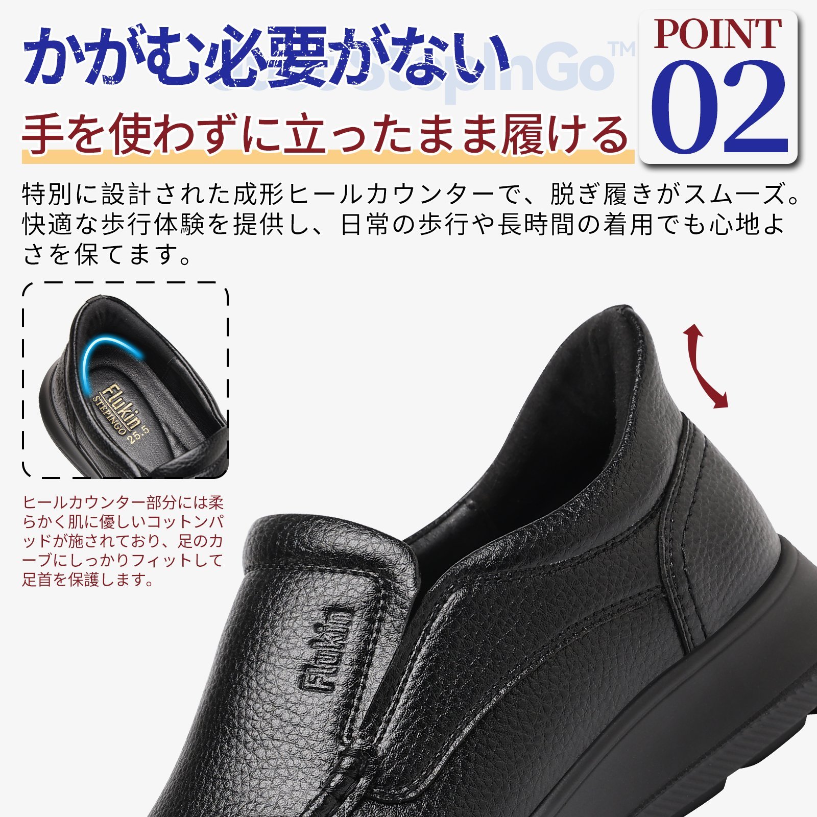 Flukin 革靴 メンズ ビジネスシューズ メンズ 革靴 レザー スリッポン メンズ 軽い スッと脱ぎ履き 立ったまま履ける 滑り防止 歩きやすい 疲れにくい 健歩シューズ 革靴 メンズ カジュアル
