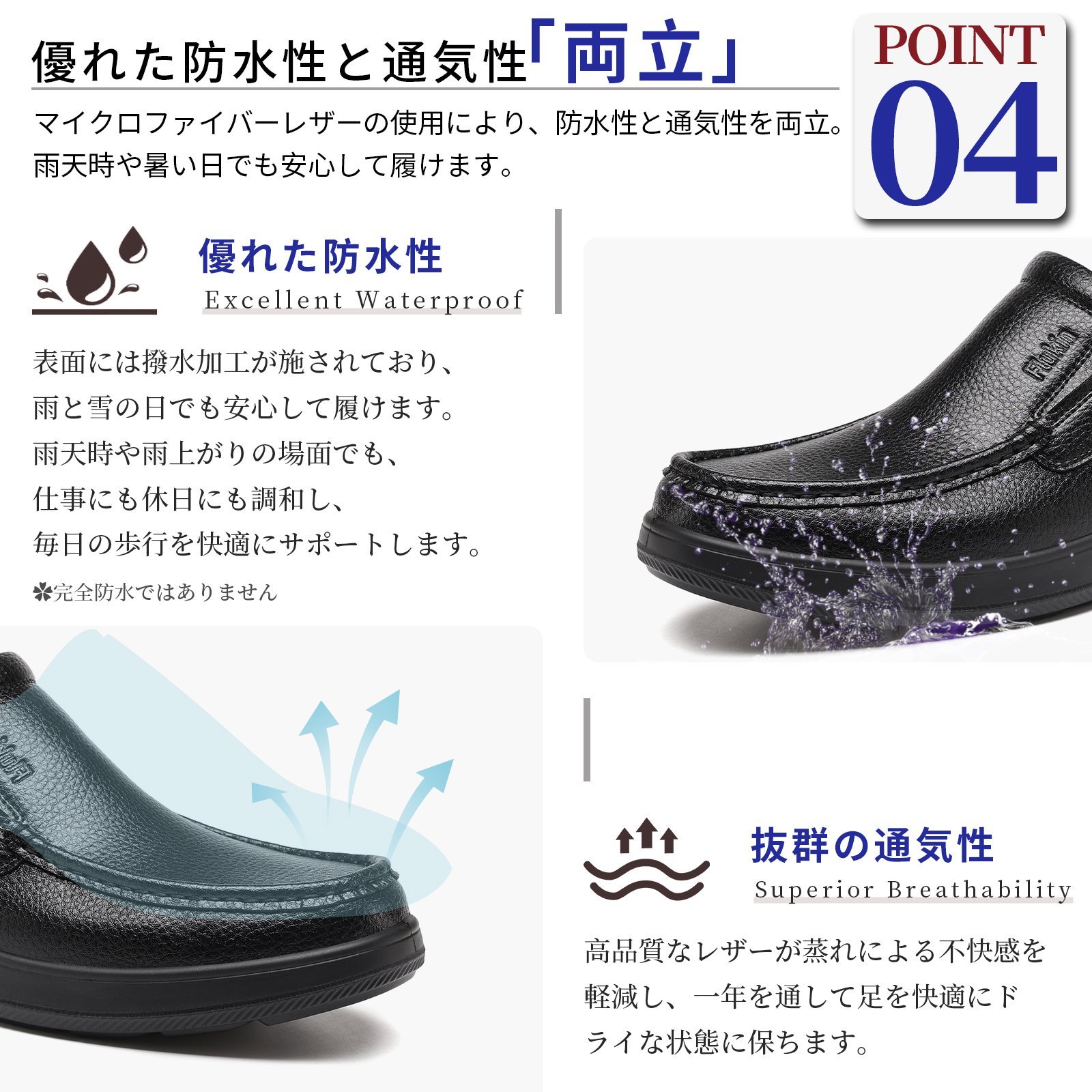 Flukin 革靴 メンズ ビジネスシューズ メンズ 革靴 レザー スリッポン メンズ 軽い スッと脱ぎ履き 立ったまま履け 滑り防止 歩きやすい 疲れにくい 健歩シューズ 革靴 メンズ カジュアル