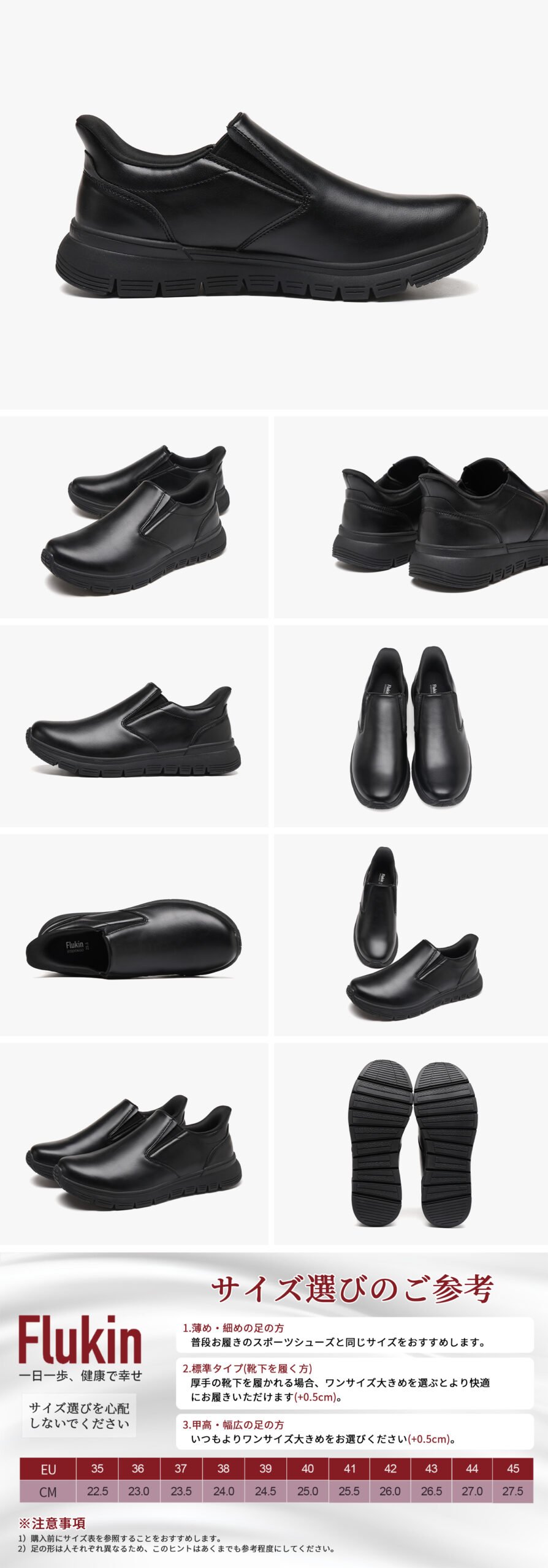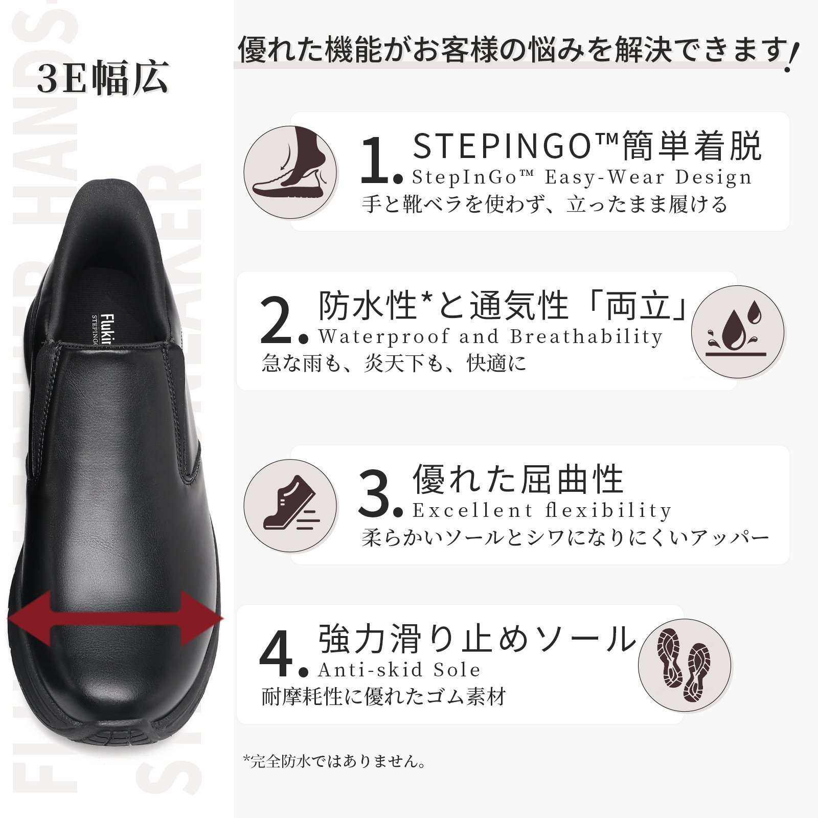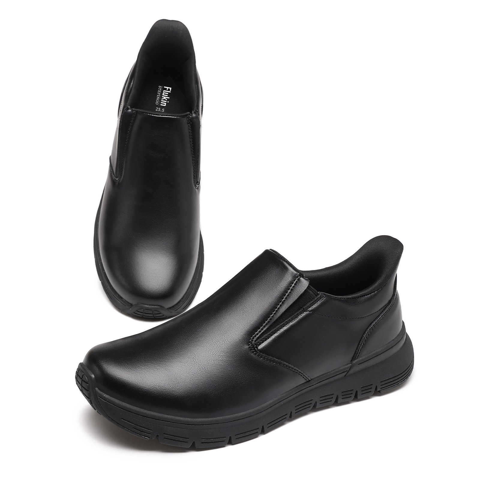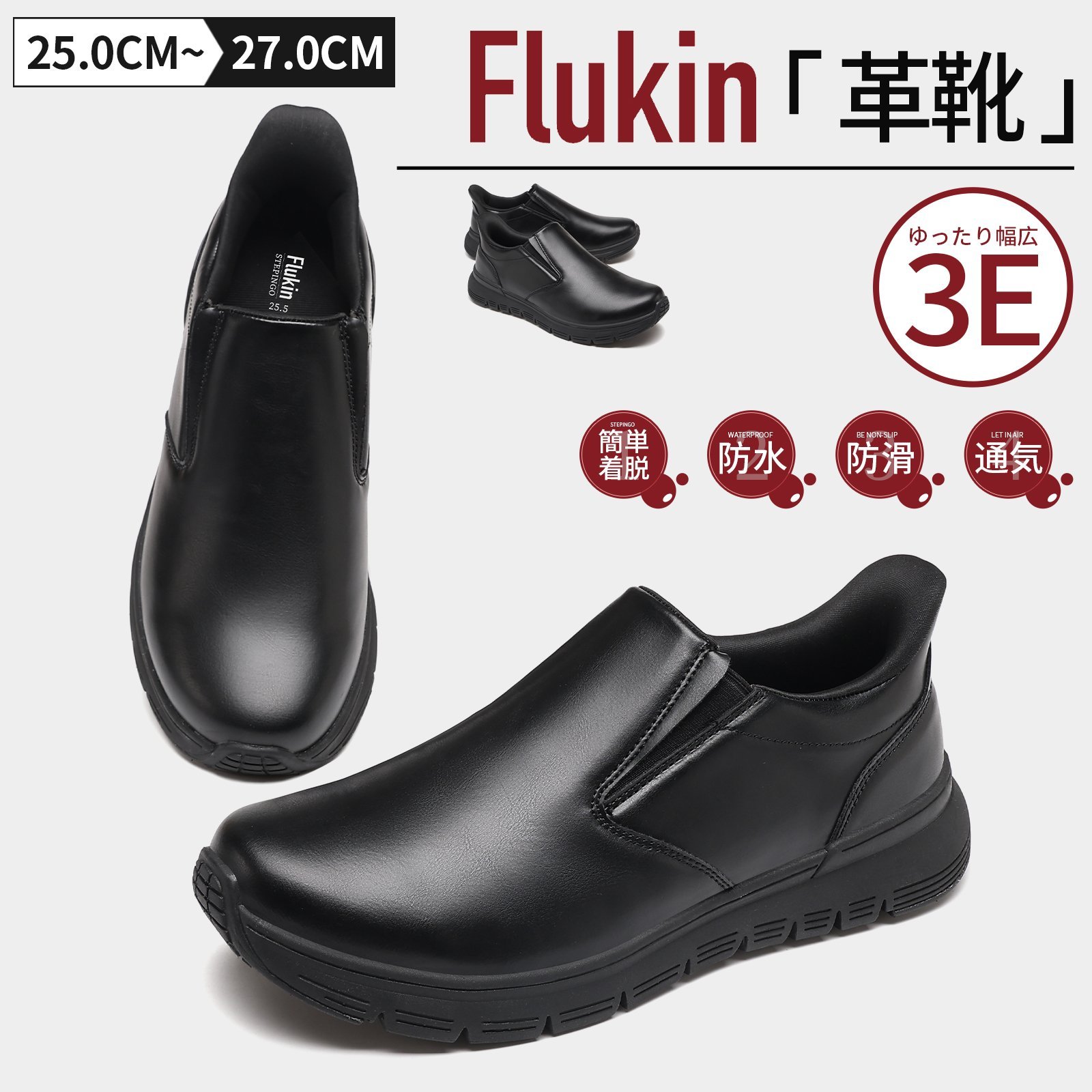 Flukin 3E革靴 滑りにくい コックシューズ レディース 厨房靴 疲れない メンズ 黒 おしゃれ 軽量 抗菌 防臭 撥水 疲れにくい 断熱 業務用 ユニフォーム キッチン ホール